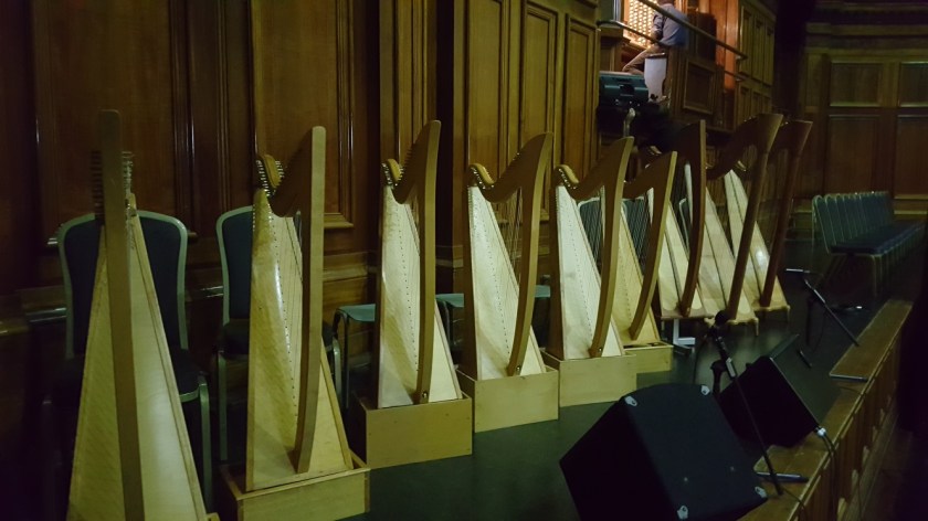 Previous Image Next Image Schoo Harp at Town Hall sm School harps lined up and ready for a big performance at the Melbourne Town Hall.